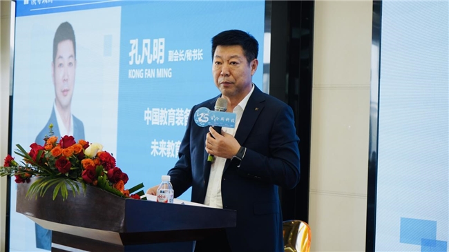 首先,中国教育装备行业协会未来教育装备分会秘书长孔凡明上台发表致辞,孔秘书长对当前中小学实验教学行业发展趋势进行剖析,高度认可百伦斯科技深耕AI+实验室领域的成果,对本次发布的AI智慧实验室新品寄予厚望,鼓励企业持续创新,助力行业高质量发展。